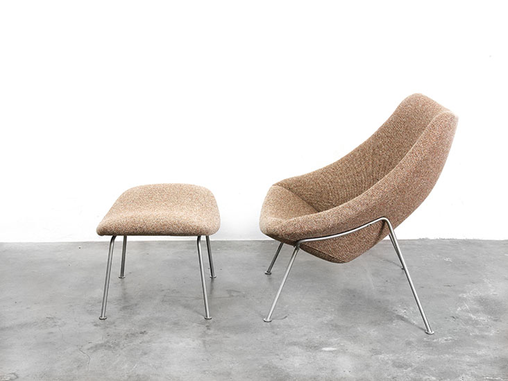 Artifort Fauteuil F157 Oyster, Pierre Paulin met voetenbank