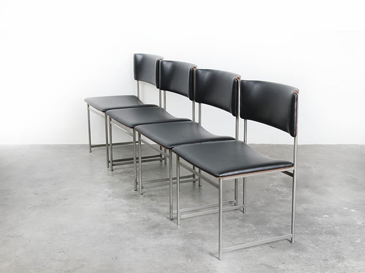 Bestaande uit mat nikkel frame en met nieuwe zwart kunstlederen bekleding en palissander rugleuning.